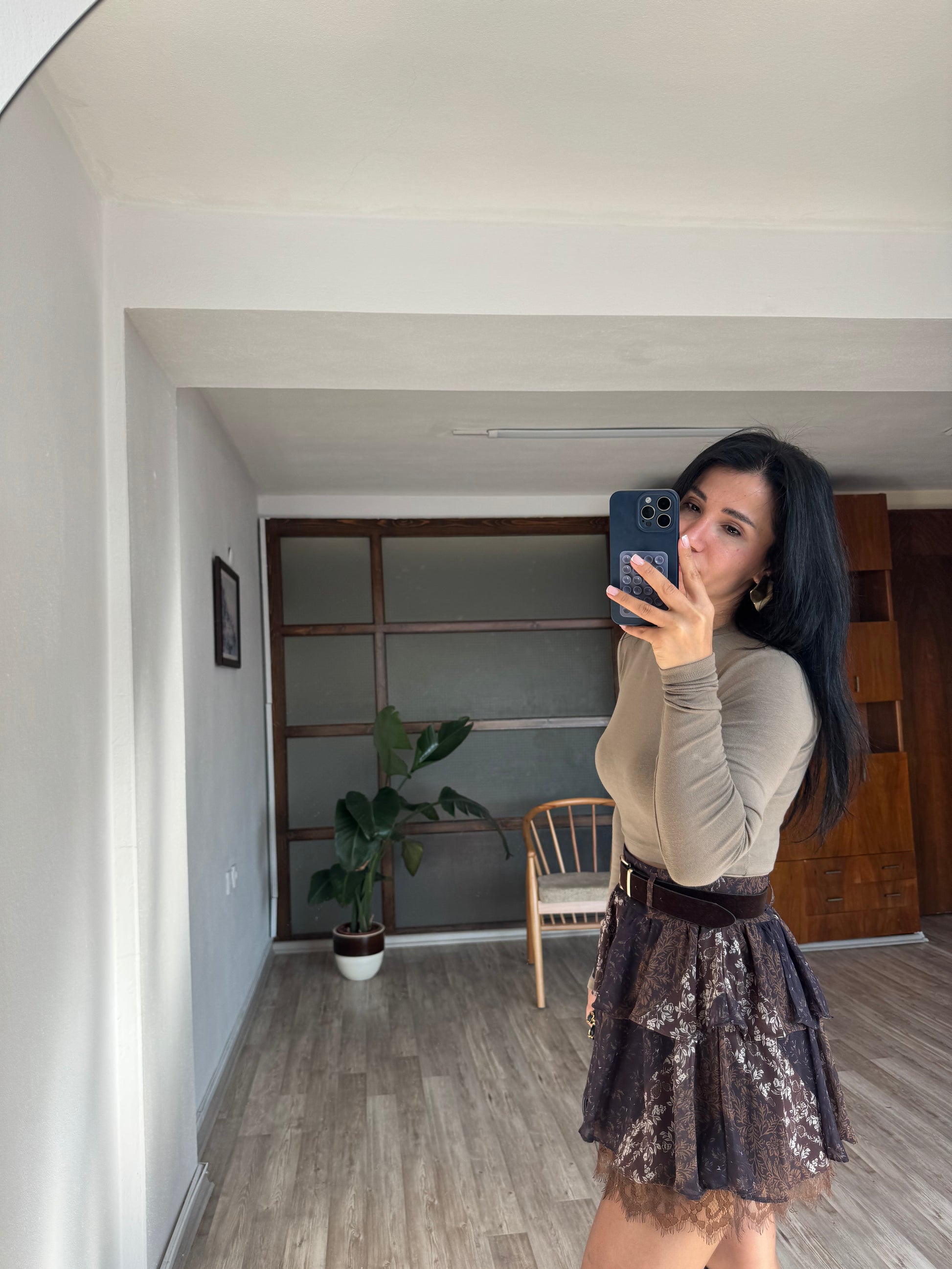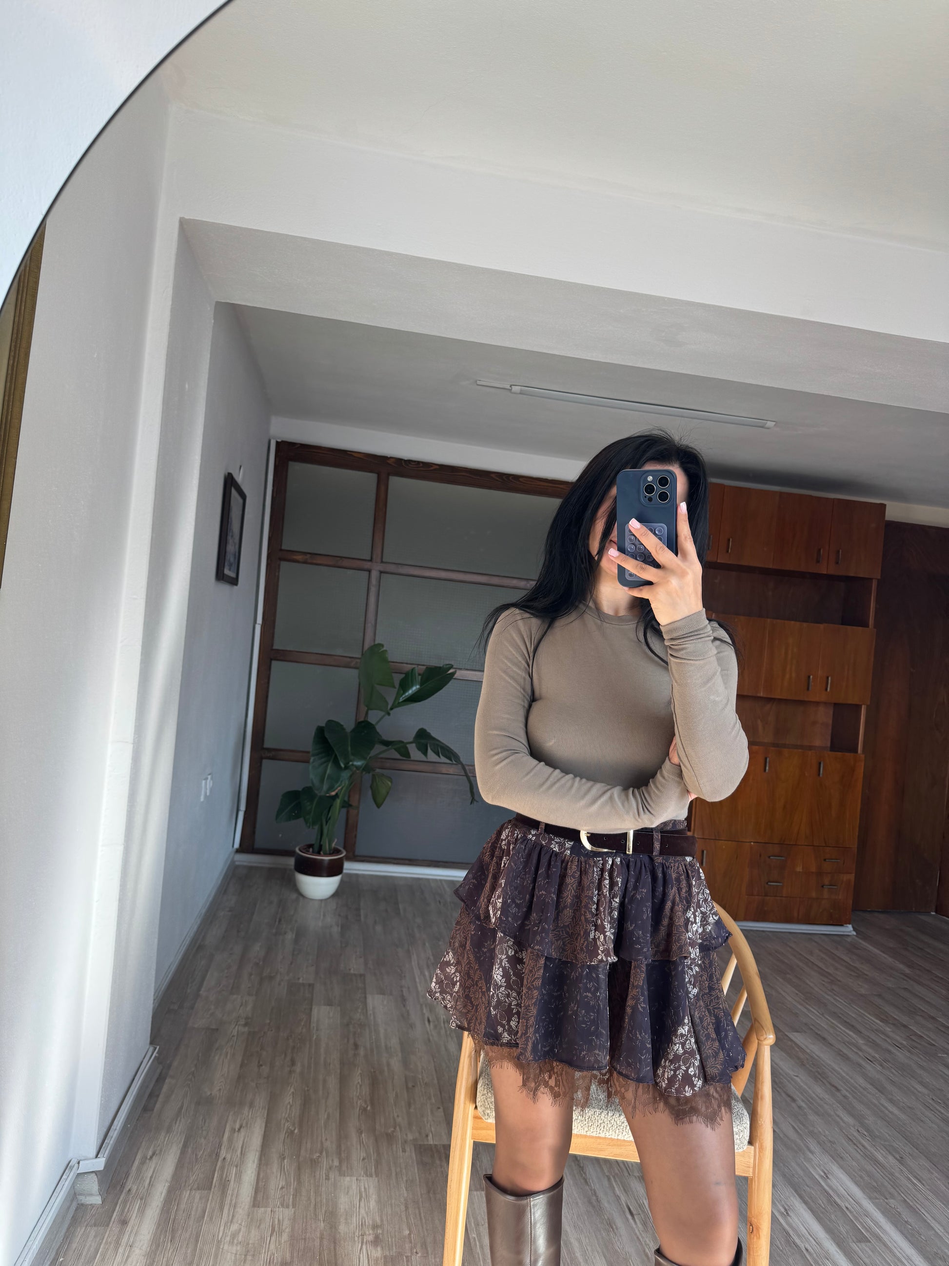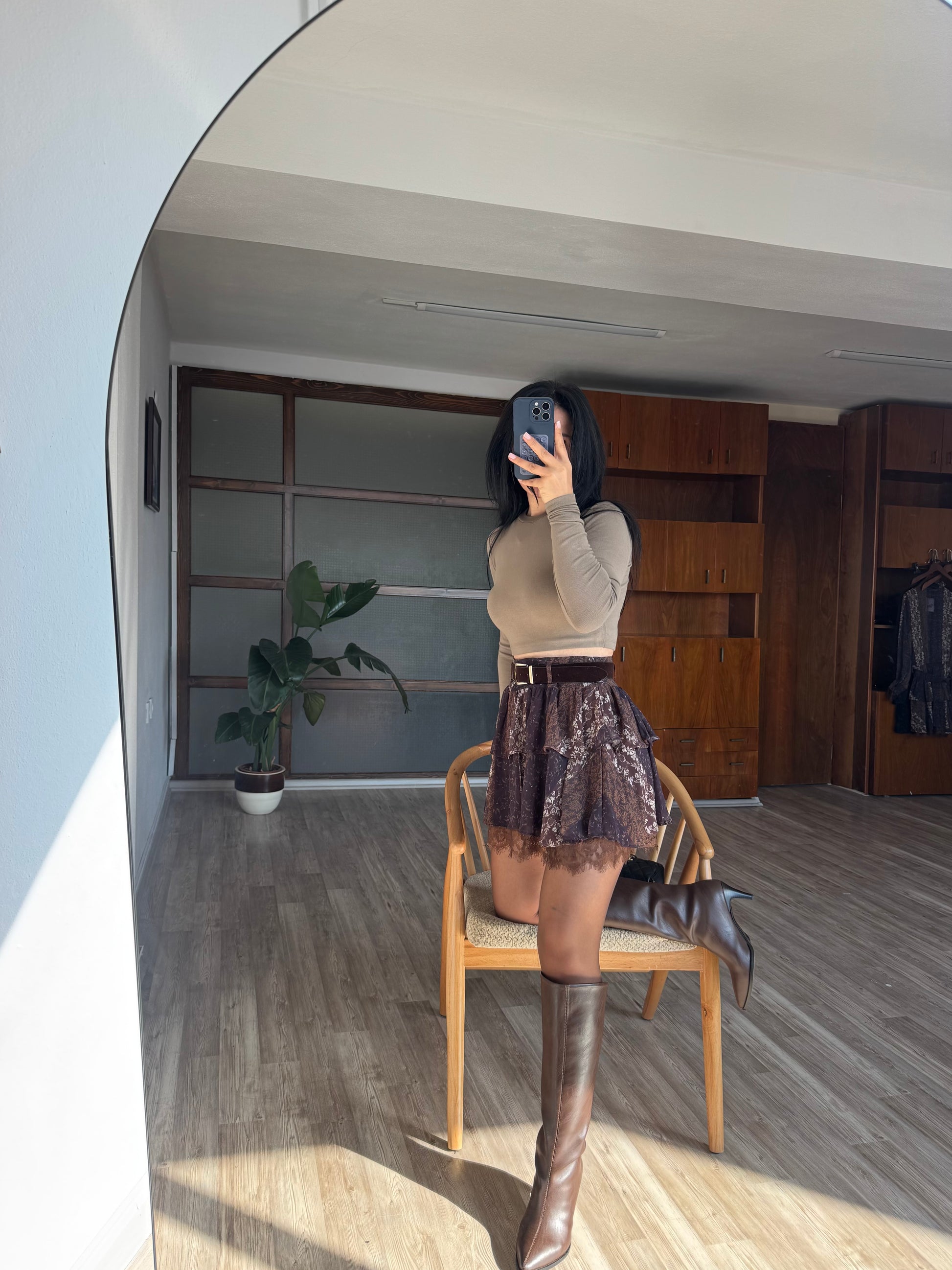 Kahverengi Şifon Etek