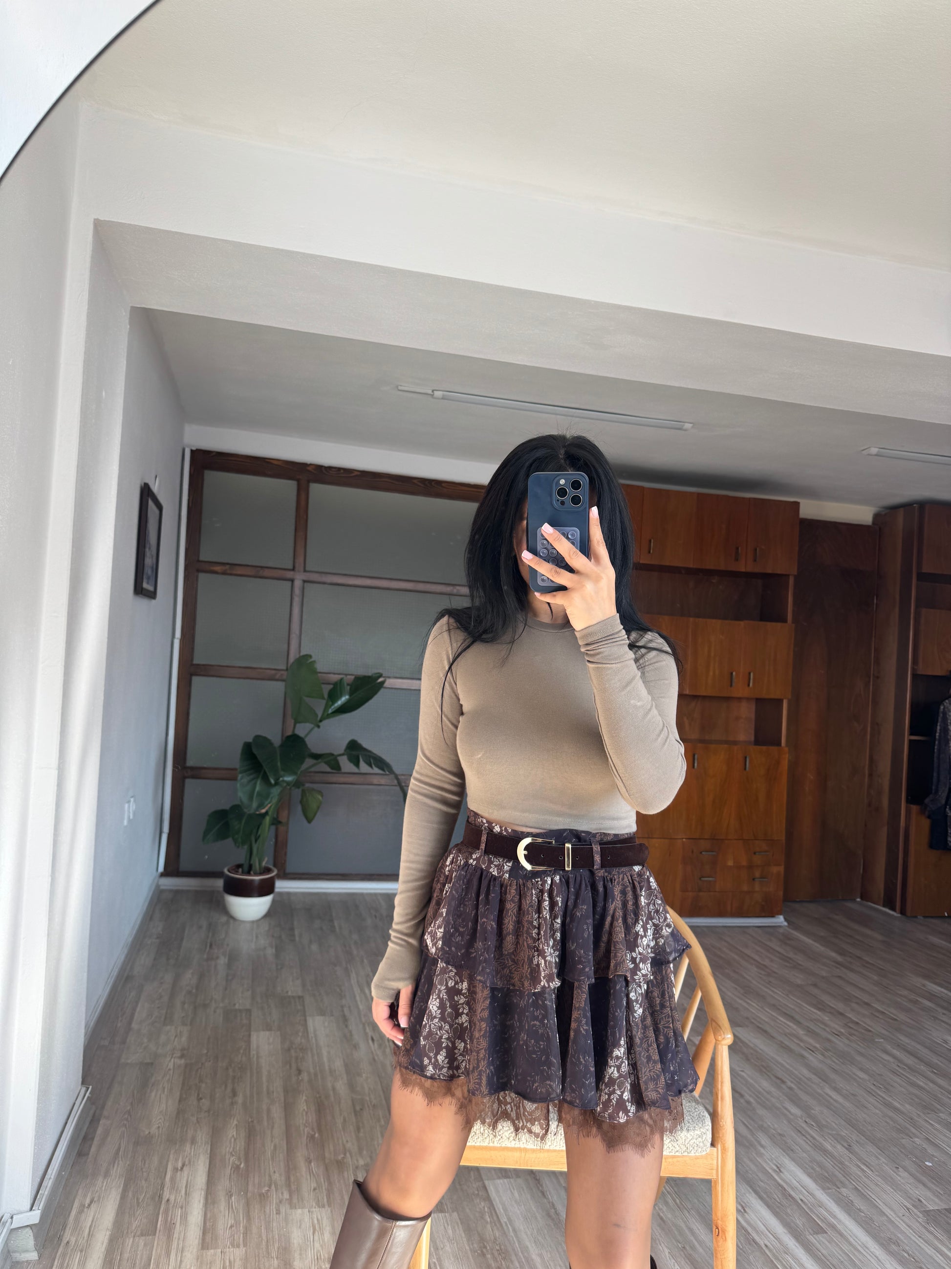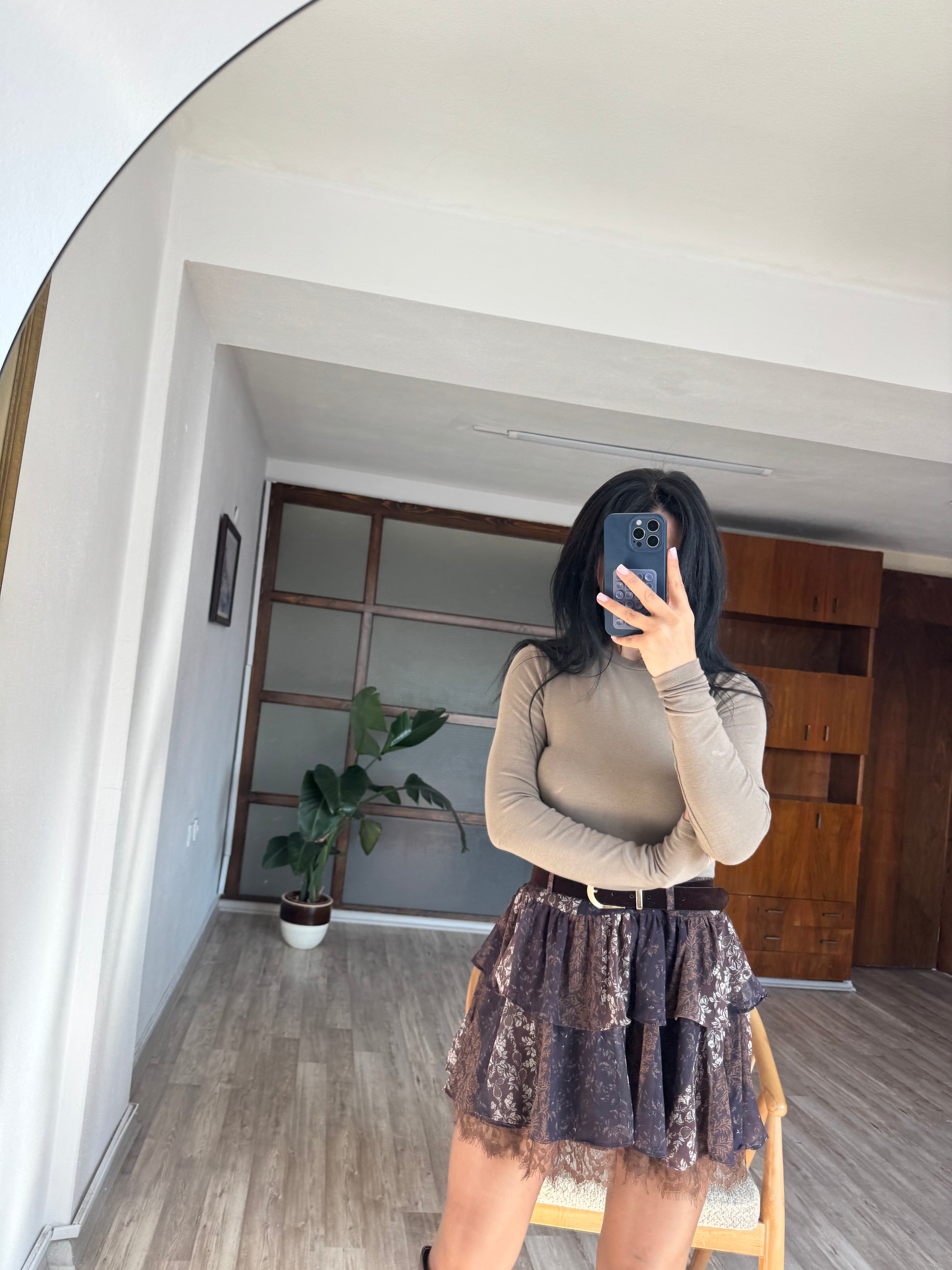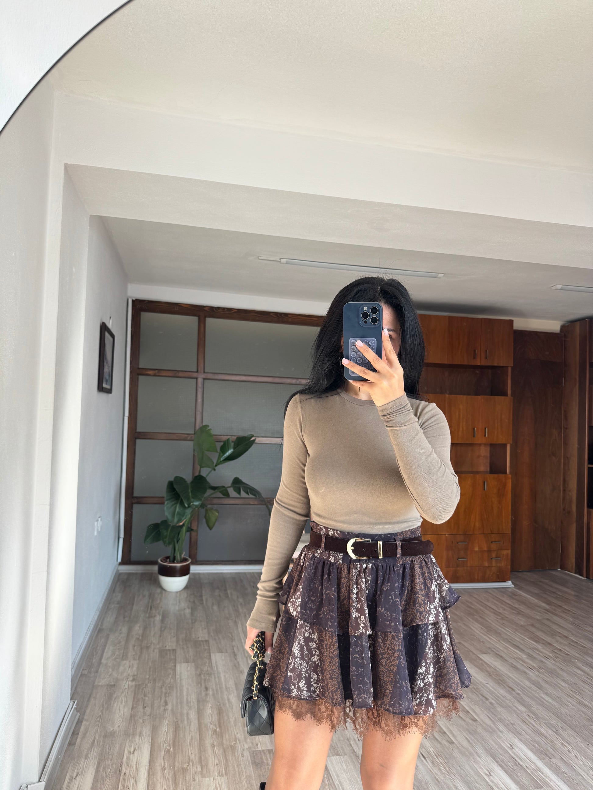 Kahverengi Şifon Etek